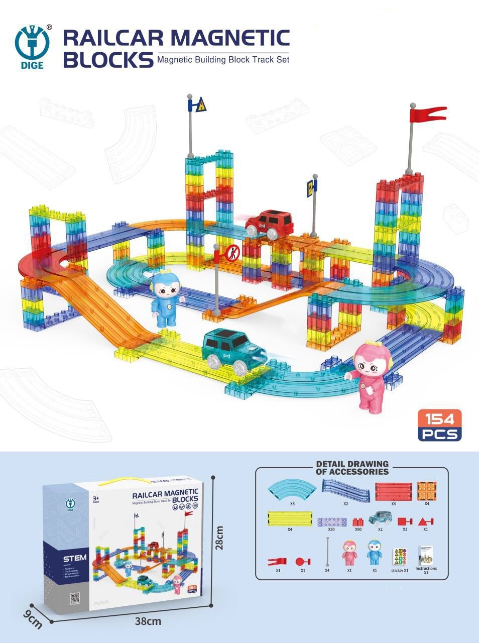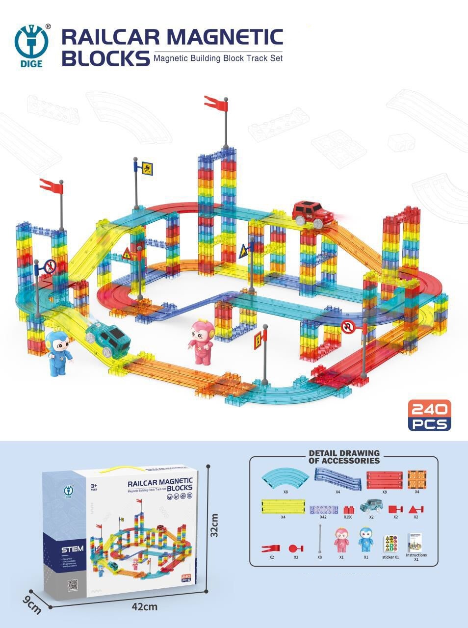 DIY創意軌道磁石積木片玩具套裝